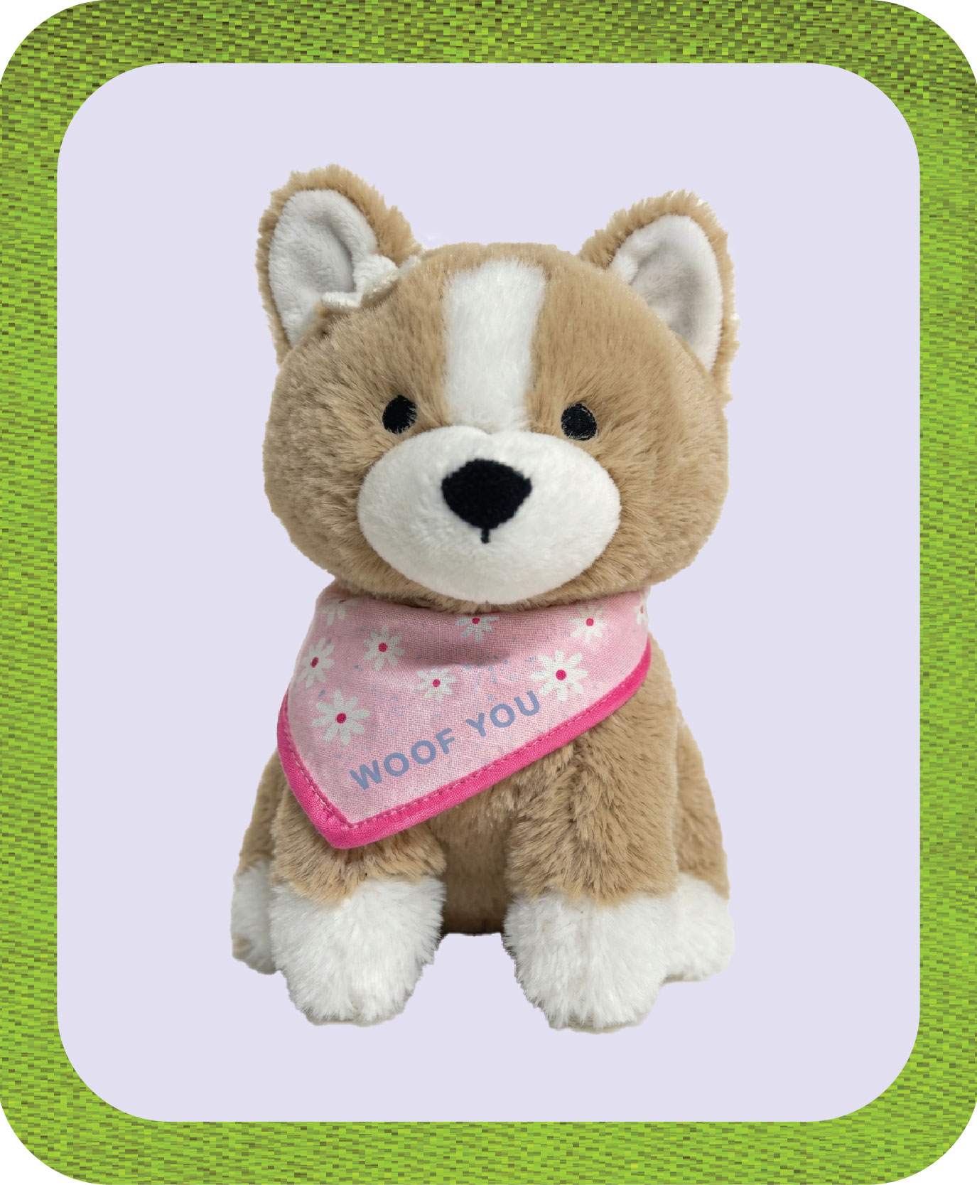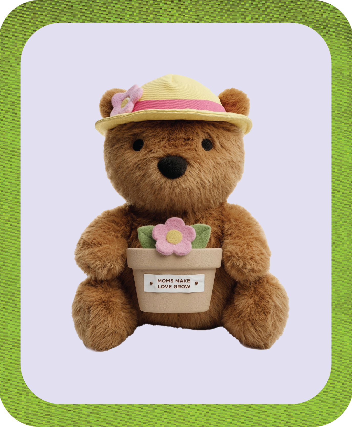 Notre ours jardinier porte un chapeau à bord avec une application florale et tient un pot de fleurs en feutre avec le message « Les mamans cultivent l'amour ». Notre adorable chien a enfilé un foulard en tissu à fleurs avec un message d'amour spécialement pour maman : « Je te wouf ». Faites plaisir à toutes les mamans de votre vie avec ces charmants compagnons en peluche qu’elles ne manqueront pas de chérir!